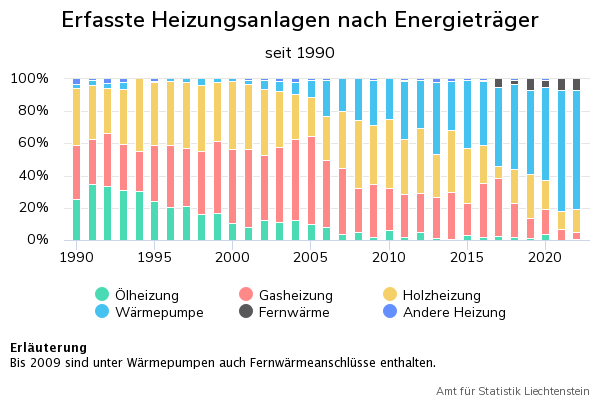 Da nicht alle Heizungsanlagen in der gleichen Weise bewilligt werden, ist eine konsistente Auswertung der neu installierten bzw. bewilligten Heizungsanlagen mit Schwierigkeiten behaftet. Das Dokument zur Methodik und Qualität der Baustatistik gibt Hinweise zur Erfassung der Anlagen im Rahmen dieser Statistik.
