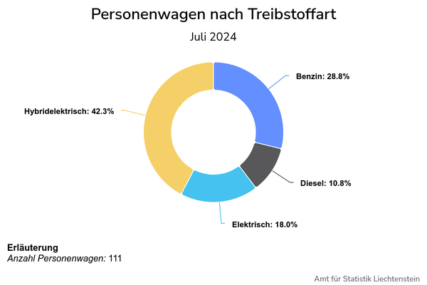 22.08.2024 - Im Juli 2024 wurden insgesamt 177 fabrikneue Fahrzeuge, davon 111 Personenwagen, vom Amt für Strassenverkehr erstzugelassen.