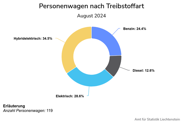 25.09.2024 - Im August 2024 wurden insgesamt 184 fabrikneue Fahrzeuge, davon 119 Personenwagen, vom Amt für Strassenverkehr erstzugelassen.