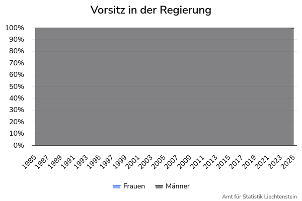 Seit dem Inkrafttreten des Frauenstimmrechts am 1. Juli 1984 wurde der Vorsitz der Regierung während insgesamt 81 Tagen von einer Frau und während 14’892 Tagen von einem Mann ausgeübt. Damit lag der Anteil der von einer Frau geführten Amtszeit im gesamten Beobachtungszeitraum bis zum 30. Juni 2025 bei 0.5%, während Männer in 99.5% der Zeit den Vorsitz innehatten.