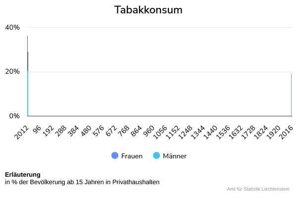 Der Indikator zeigt den Anteil der Frauen und den Anteil der Männer der Bevölkerung, die angeben Raucher/in zu sein an der Gesamtbevölkerung an.
